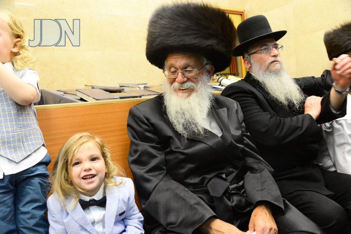 A Lag Ba-omer haircut for a three year old boy who was born to his parents after FORTY years of waiting. To his left is his proud father.
