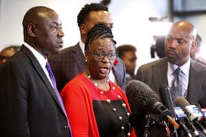 Allison Jean, the mother of Botham Jean, speaks during a news conference. Photograph: Tony Gutierrez/AP