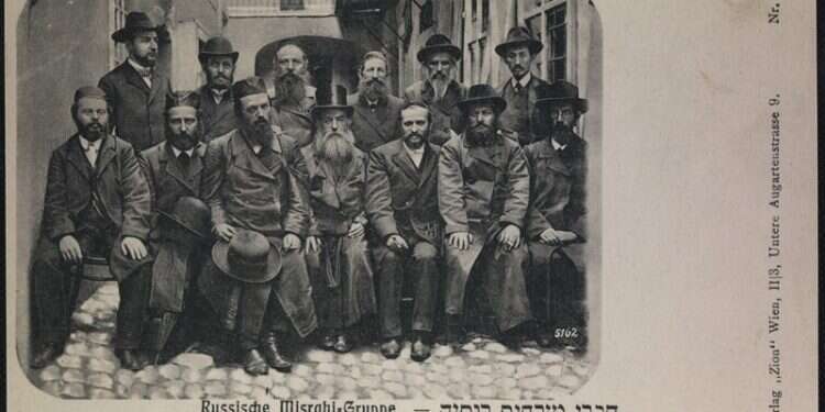 הרב יצחק יעקב ריינס (במרכז) עם חברי המזרחי ברוסיה, 1902. באדיבות הספרייה הלאומית [כך נראו פעם רבני מזרחי....]